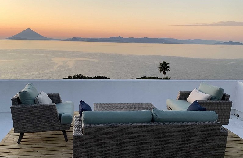 (素晴らしい夕焼けを見ることができる屋上テラス)
