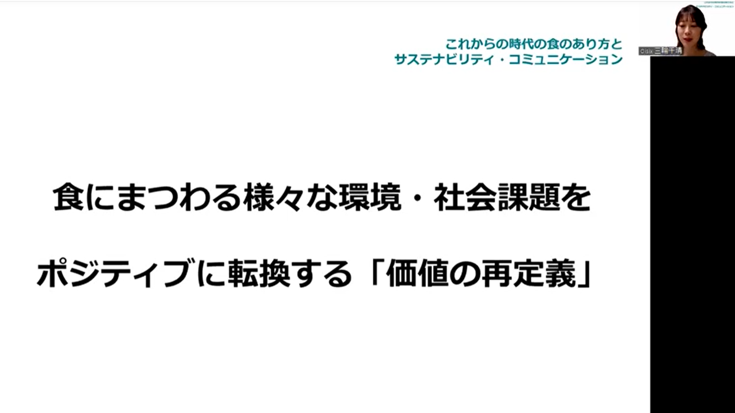 そしてもう一つの重要な側面としては、テイクアウトやデリバリーの急増によるプラスチック容器の増加や、外食産業の営業自粛などで食材が行き場を失ったことによる食品ロス増加といった社会課題が浮き彫りになったことが挙げられます。「コロナ禍での食生活の変化によって、私たちとSDGsとの距離が近づいた」と大屋氏は指摘します。