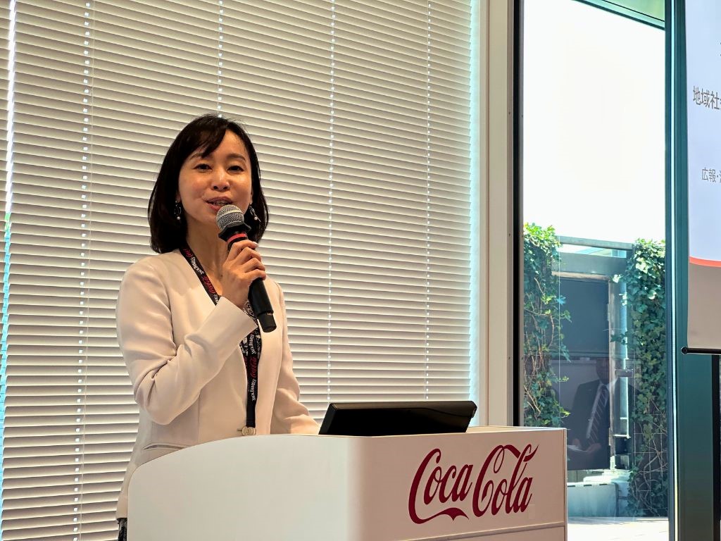 (コカ・コーラシステムの水資源保護の取り組みについて語る、日本コカ・コーラ副社長の田中美代子氏)