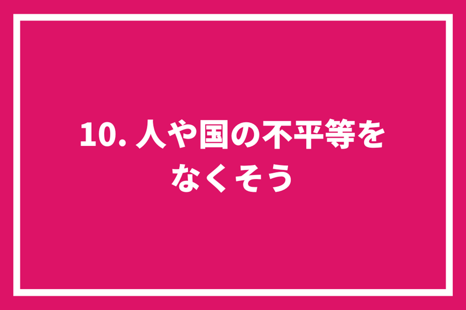 「SDGs10. 人や国の不平等をなくそう」では、「国内および国家間の格差を是正する」ことを目標としています。