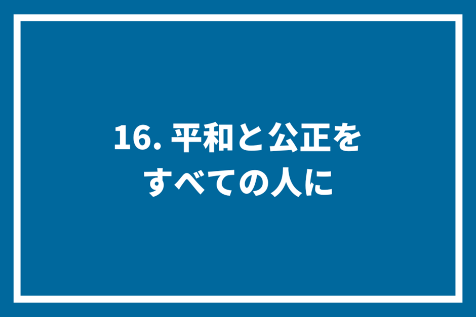 「SDGs16. 平和と公正をすべての人に」では、「持続可能な開発に向けて平和で包摂的な社会を推進し、すべての人に司法へのアクセスを提供するとともに、あらゆるレベルにおいて効果的で責任ある包摂的な制度を構築する」ことを目標としています。