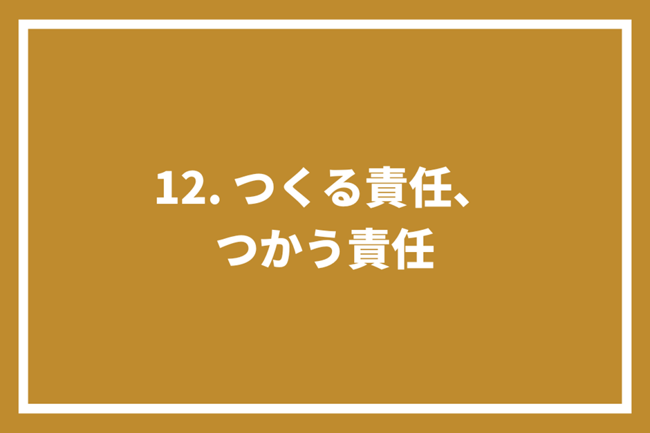「SDGs12. つくる責任、つかう責任」では、「持続可能な消費と生産のパターンを確保する」ことを目標としています。