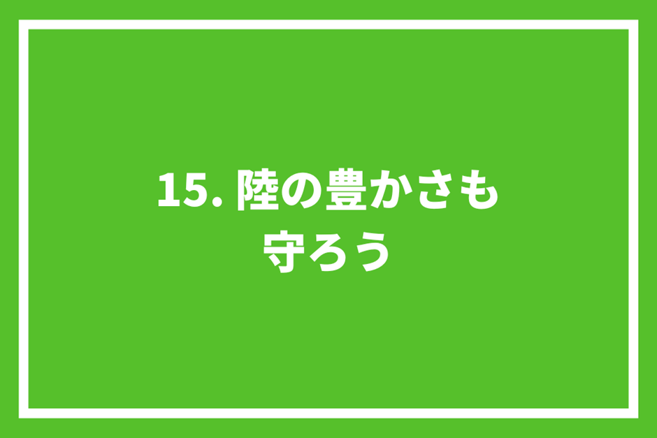 「SDGs15. 陸の豊かさも守ろう」では、「陸上生態系の保護、回復および持続可能な利用の推進、森林の持続可能な管理、砂漠化への対処、土地劣化の阻止および逆転、ならびに生物多様性損失の阻止を図る」ことを目標としています。